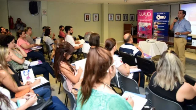La presentación estuvo a cargo de Omar Quirelli, gerente de Negocios; Magalí Berman, de Tarjetas de Crédito y Dante Vallejos, de Banca Electrónica, quien además mostró a los asistentes el nuevo servicio de asesoramiento on line del Nuevo Banco del Chaco, disponible en la página web (ver aquí).