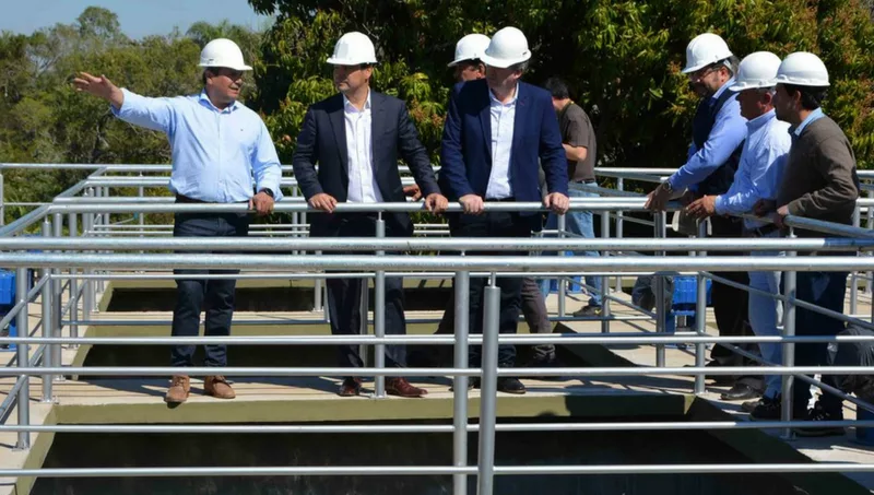 La planta potabilizadora se ubica a la vera de la avenida 9 de Julio, muy cerca del ingreso a la ciudad. Junto a Valdés estuvieron en este acto inaugural, el intendente Eduardo Burna; el interventor de la Administración Provincial de Obras Sanitarias, Arturo Vázquez; los ministros de Coordinación y Planificación, Horacio Ortega; de Obras Públicas, Bernardo Rodríguez; de Industria; Raúl Schiavi y de Seguridad, Juan José López Desimoni; el presidente del Concejo Deliberante local, Manuel Valdés y jefes técnicos de la planta potabilizadora y de la EBY.