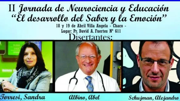 La actividad se desarrollará en la Iglesia Buenas Nuevas con la disertación de Sandra Torresi, Psicopedagoga y Licenciada en Educación, Especialista en Neuropsicología (UBA), Doctorada en Psicología (UP), Vicepresidente de la Sociedad Iberoamericana de Neuroeducación y Directora de Neurociencia Educacional; Alejandro Schujma, Licenciado en Psicología, Especialista en Familias y Adolescencias y autor del libro “Generación NINI, jóvenes sin proyectos que NI estudian, NI trabajan; y Abel Albino, Médico Psiquiatra, Doctor en Medicina, Fundador y Presidente de la Fundación CONIN (Cooperadora para la Nutrición Infantil).