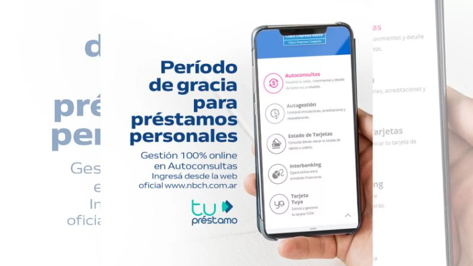Asimismo, se recuerda la vigencia de la línea de consolidación de deudas la cual permite reducir el importe mensual de las cuotas mensuales de préstamos, anticipos y tarjetas de crédito. Incluye deudas contraídas con NBCH y de otras entidades tanto bancarias como mutuales y financieras. La consolidación de deudas permite unificar deudas y extender el plazo por hasta 120 meses, para disminuir el porcentaje de afectación del ingreso mensual. De esta manera, se brinda alivio a la situación económica y se recupera poder de compra del salario familiar. La gestión de Consolidación de Deudas es presencial, en las sucursales de toda la provincia.