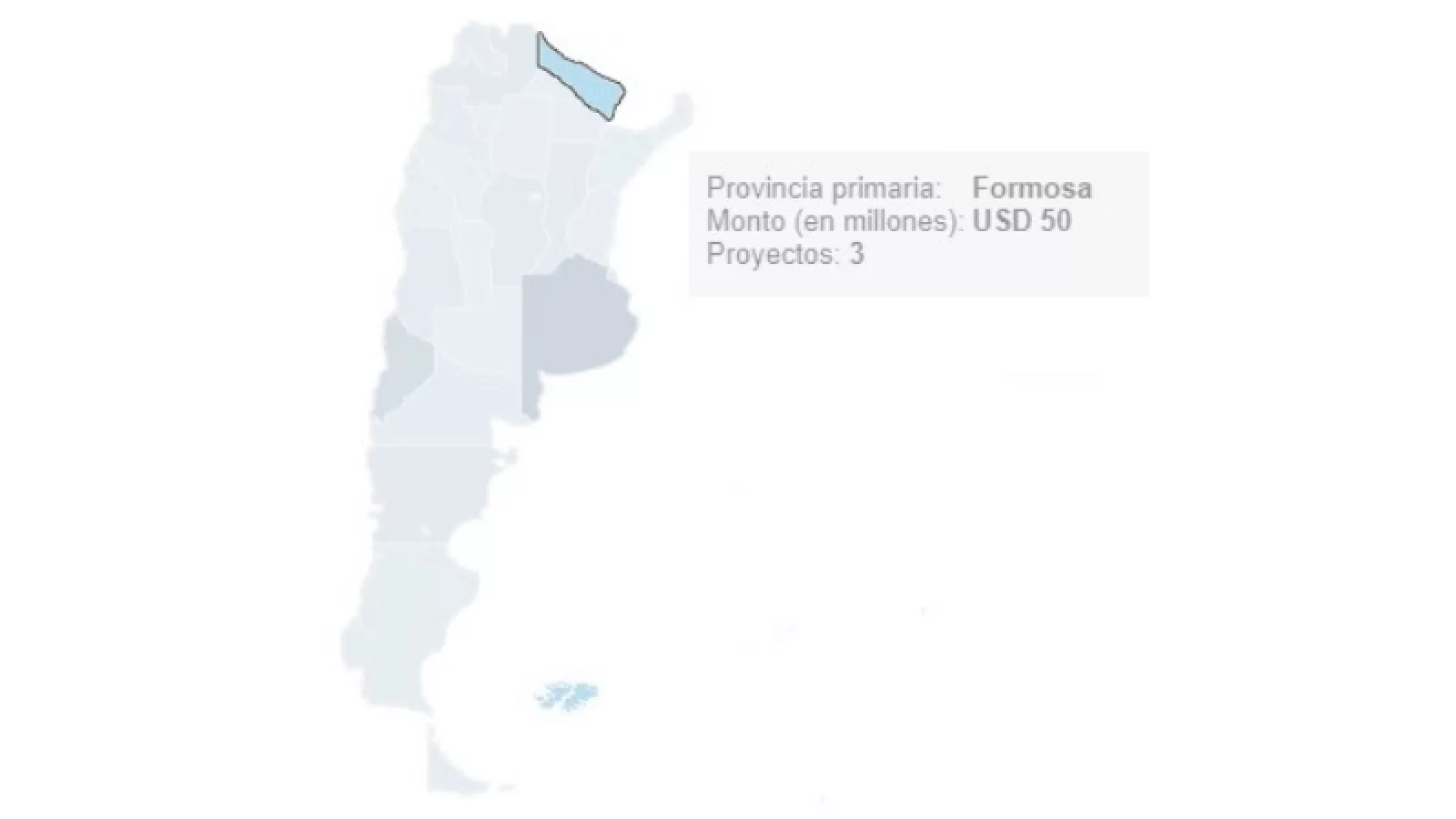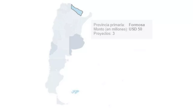 Por el contrario, algunas de las provincias del Litoral estuvieron entre las que menos capitales recibieron. El caso más notable es el de Formosa, con apenas US$ 50 millones destinados a tan sólo tres proyectos. La única otra provincia en el país que estuvo por debajo de esta fue Santiago del Estero, con US$ 20 millones (y la misma cantidad de proyectos).