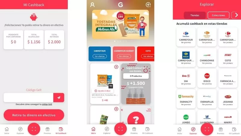 La app se dedica principalmente a devolver cashback (reembolsar dinero) a sus usuarios. ¿De qué forma? Promocionando productos de consumo masivo (más de 70 por semana), que tienen un monto de dinero asociado (cashback).