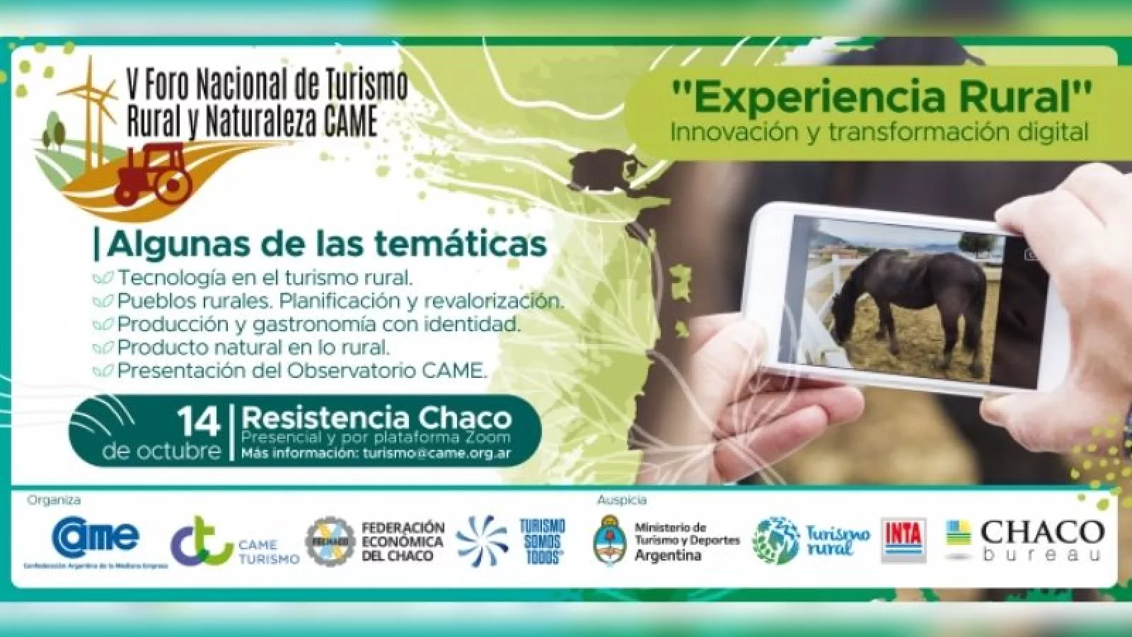 En vistas a la reactivación de los eventos y actividades en general, asociados de la Federación Económica del Chaco (FECHACO) en forma conjunta con diferentes instituciones provinciales y la Confederación Argentina de la Mediana Empresa (CAME), están trabajando en la organización del V Foro de Turismo Rural y Naturaleza de CAME, que se llevará adelante en Resistencia el próximo 14 de octubre.
