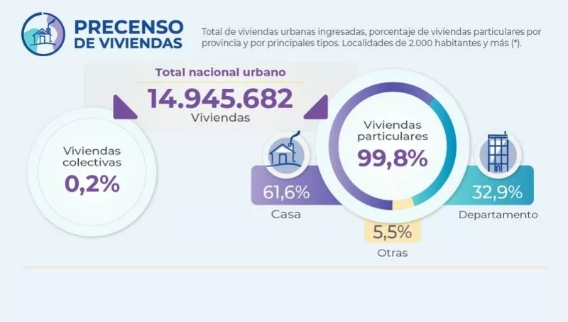 El Instituto Nacional de Estadística y Censos (INDEC) presentó el Precenso de Viviendas, que resulta en una herramienta online que posibilita navegar en un mapa interactivo y conocer cómo están distribuidas las viviendas y a qué tipo pertenecen en cada provincia argentina.