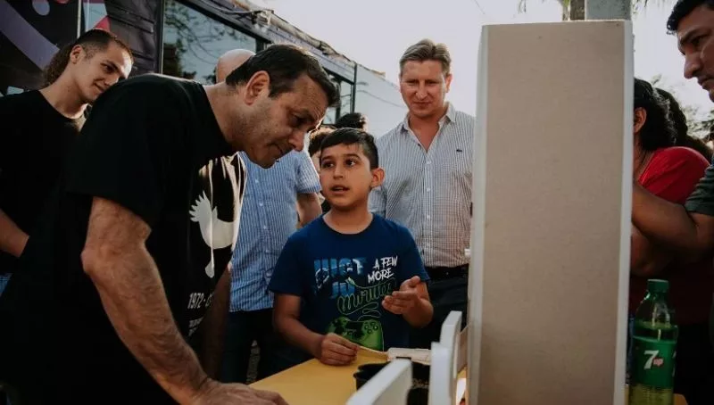 Como antesala del camión gamer, Franco presentó en sociedad su proyecto y defendió su obra ante el propio mandatario provincial.