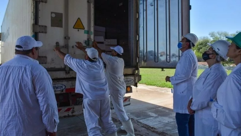 El subsecretario de Ganadería, Sebastián Bravo, encabezó el operativo de carga, embalaje y seguridad sanitaria del contenedor refrigerado. El gobierno provincial viene trabajando la cadena caprina en materia de comercio exterior y desde 2020 ha logrado colocar distintos embarques con cortes cárnicos a distintos mercados mundiales.