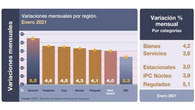 El Índice de Precios al Consumidor (IPC) alcanzó 4,0% mensual en enero, igual cifra que la registrada en diciembre, y presentó una inflación interanual de 38,5%.