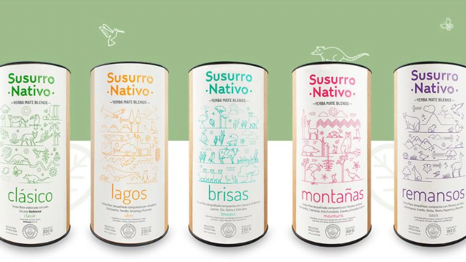 Susurro Nativo es una yerba agro ecológica libre de agrotóxicos y pesticidas con un estacionamiento prolongado. Los blends son un mix de yerba creados por ingenieros en alimentos, nutricionistas y bioquímicas en la que trabajan con cuatro líneas y cada una cumple una función determinada: una energizante, otra digestiva, otra que regula los bio ciclos del cuerpo y otra que es relajante, tanto para infusiones frías como calientes.