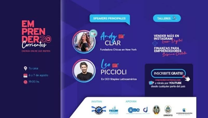 Emprender Corrientes 20 iniciará este 6 de agosto. A las 19.40 se realizará un workshop a cargo de Luzzi Digital: “Vender más en Instagram”, seguido por el cierre a cargo de Andy Clar, fundadora de Chicas en New York.