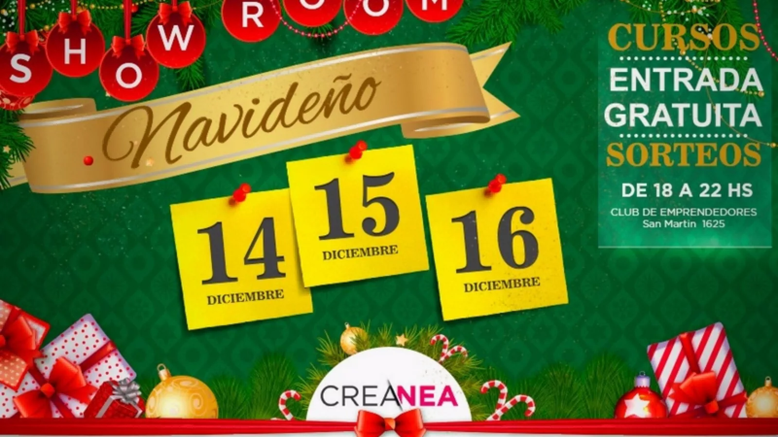 La Asociación en formación Creativos del NEA, acompañado por el Club de Emprendedores dependiente del Ministerio de Industria, Trabajo y Comercio, invitan a participar de la primera feria navideña denominada “Showroom Navideño” que se realizará el 14, 15 y 16 en el Club de Emprendedores, ubicado en San Martín 1625.