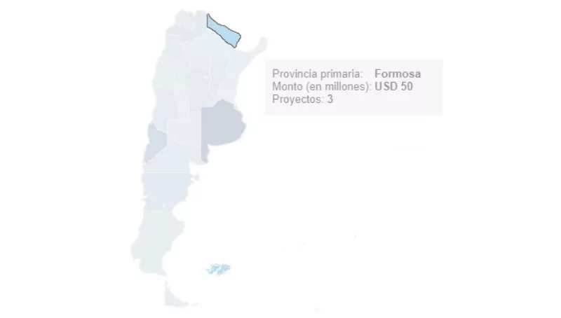 Por el contrario, algunas de las provincias del Litoral estuvieron entre las que menos capitales recibieron. El caso más notable es el de Formosa, con apenas US$ 50 millones destinados a tan sólo tres proyectos. La única otra provincia en el país que estuvo por debajo de esta fue Santiago del Estero, con US$ 20 millones (y la misma cantidad de proyectos).