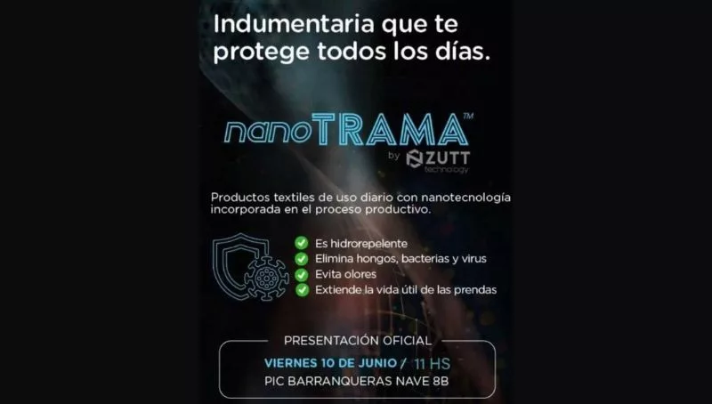 Los titulares del laboratorio privado Nairotech, realizarán en vivo la primera prueba de hidrorepelencia por nanotecnología sobre una prenda de vestir. Esta tecnología, desarrollada en conjunto con Zutt Protect, representa un avance revolucionario en la confección textil-tecnológica en Argentina. Adicionalmente el grupo empresario chaqueño logró atraer inversores de la industria farmacéutica de Capital Federal y un laboratorio privado radicado en Mar del Plata.