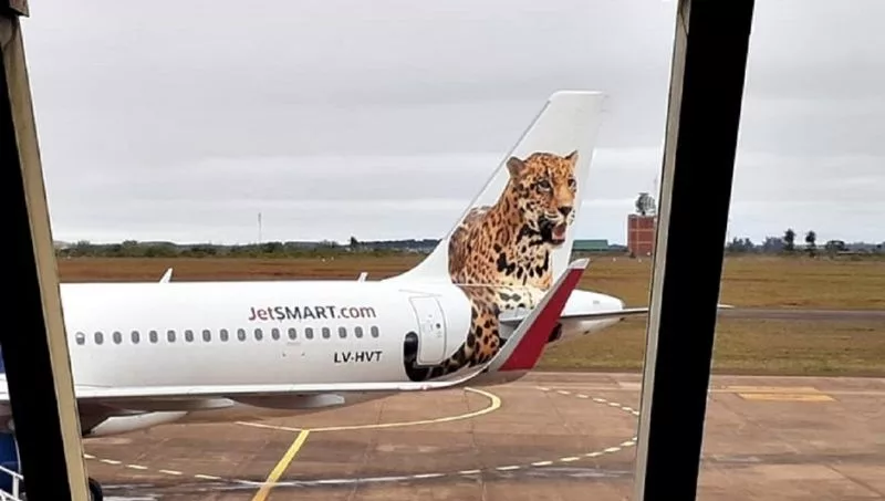 Una de las particularidades de los aviones A320, es que cada uno está representado por un animal que se identifica con el destino. Para el avión que llegó a Posadas, plotearon un Yaguareté, animal emblemático de la tierra colorada.