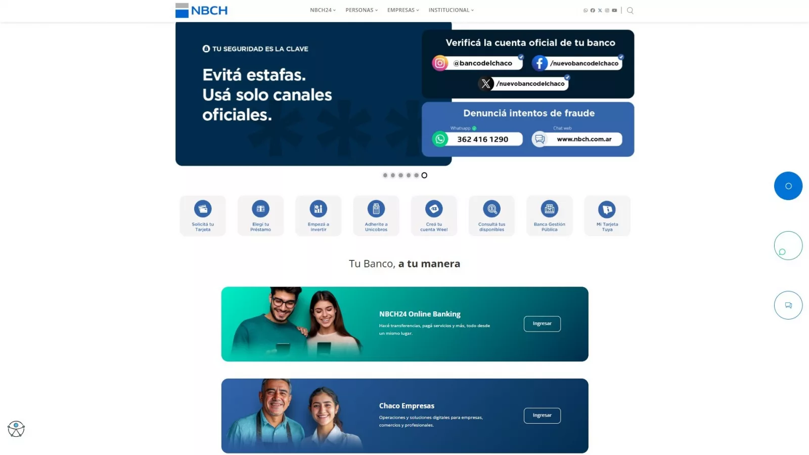 La nueva web integra accesos directos a la banca digital, productos estratégicos como Tarjeta Tuya y la oferta comercial de las empresas vinculadas al grupo NBCH, que incluyen seguros, fintech e inversiones. Además, se desarrollaron páginas específicas para ordenar la información de préstamos, inversiones y la cuenta WEE.