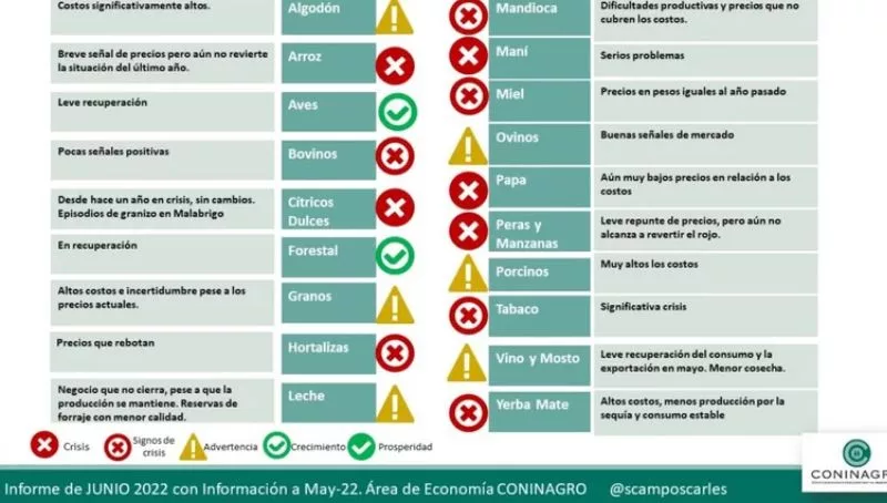 En el relevamiento de las 19 economías regionales monitoreadas por el área de Economía de Coninagro, con cifras que corresponden al mes de mayo, se destaca la continua suba de costos y siguen viéndose las bajas productivas por el clima desde principios de año.