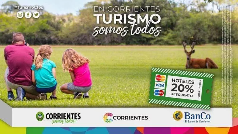 Mediante la firma de un Convenio entre el Ministerio de Turismo provincial y el Banco de Corrientes S.A. en octubre pasado se agregó un incentivo más, tanto para los prestadores de servicios turísticos, como para los potenciales turistas. Este acuerdo, que sigue vigente, prevé un descuento del 20% en hoteles, un 10% en prestaciones turísticas, además de la posibilidad de financiarlos hasta en 6 cuotas sin interés, a los clientes de dicha entidad financiera.