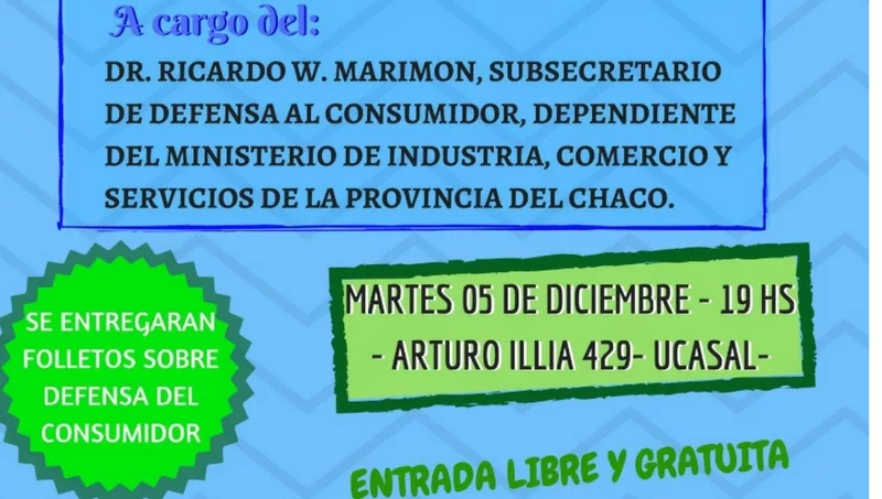 En el marco de la ley provincial nº2068-D 8 antes Ley Provincial. Nº7134, la Subsecretaria de Defensa al Consumidor de la Provincia del Chaco disertará sobre procedimientos administrativos a estudiantes universitarios y público en general, en A. Illia 429 sede de la Universidad.