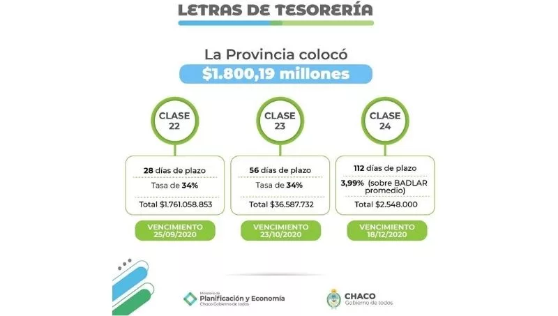 Este mes, la provincia debía afrontar vencimientos de las emisión de Letras de Tesorería de las Clases 12, 17 y 19 correspondiente a los meses de abril, junio y julio del corriente año, sin embargo la suma adjudicada superó en un 4% a los vencimientos de capital más intereses mencionados.