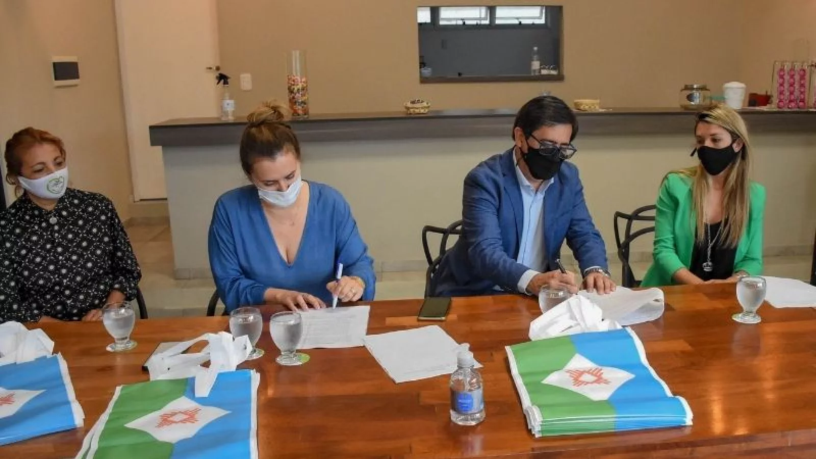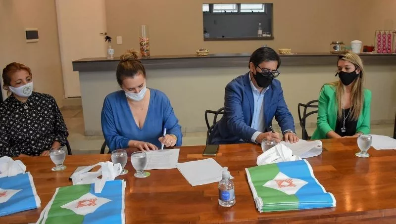 En el Paseo Costanero, firmaron un convenio de trabajo conjunto con el intendente Gustavo Martínez para la promoción de esta iniciativa eco-voluntaria basada en la distribución de bolsas reutilizables y en la colocación de urnas recolectoras de donaciones para la fundación “Sembrando Conciencia”.