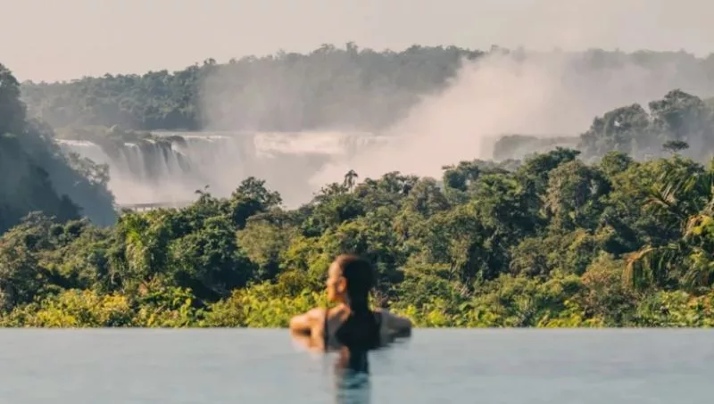 El hotel tiene vista a la Garganta del Diablo, que con 82 metros de altura es la más impactante del parque. Una vista que también regala la infinity pool de 50x15 metros, estratégicamente orientada hacia una de las Siete Maravillas Naturales del Mundo.