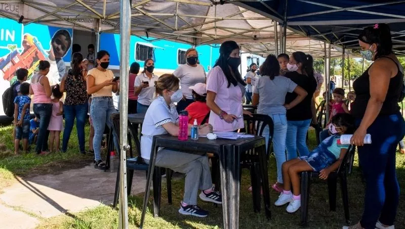 Al lugar fueron mujeres embarazadas y con sus hijos e hijas para realizarse diagnóstico clínico con examen antropométrico y una historia clínica que los encuestadores cargan a través de una aplicación. Luego del examen clínico (peso, talla, perímetro cefálico y pruebas visuales, entre otros) se realizó el diagnóstico que, si deriva en desnutrición u obesidad, da la posibilidad a los y las pacientes para que sigan un tratamiento de recuperación en la sede de Fundación Conin Chaco, en avenida 9 de Julio 5300, en Barranqueras.