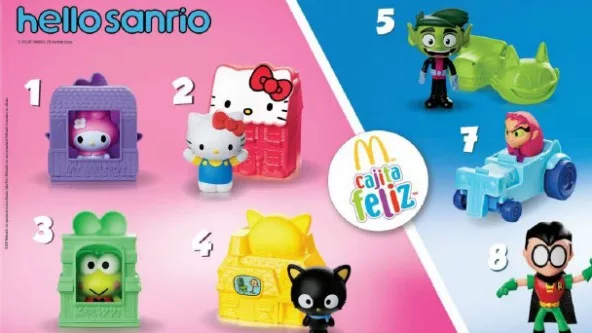 Este mes, McDonald’s ofrecerá la posibilidad de compartir grandes momentos de entretenimiento y diversión a toda la familia. Esta vez, la Cajita Feliz tendrá 9 diferentes opciones. DC presentará a Teen Titans Go! y llenará cada Cajita Feliz con acción y humor. Al mismo tiempo, Hello Sanrio presentará a Hello Kitty y sus amigos: personajes atemporales que conquistarán con su ternura tanto a niños como a adultos. Además los juguetes contarán con hojas adhesivas para decorar, accesorios y distintas funcionalidades.