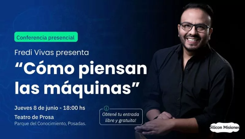 En “Cómo piensan las máquinas” Fredi Vivas compartirá con el público misionero un fascinante viaje entre la realidad y la ficción, durante el cual abordará cuestiones fundamentales sobre la inteligencia artificial, como lo son sus límites y sus riesgos, y aportará su visión sobre la mejor manera de aprovecharla de forma responsable.