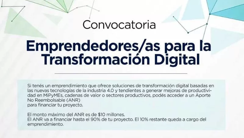 La Universidad Nacional del Chaco Austral, a través de su Incubadora, abrió convocatoria para emprendedores que ofrezcan soluciones de transformación digital, basadas en las nuevas tecnologías de la industria 4.0, tendientes a generar mejoras de productividad en MiPyMEs, cadenas de valor o sectores productivos. Los mismos pueden acceder a un Aporte No Reembolsable (ANR) para financiar sus proyectos.
